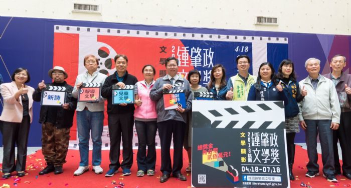 【本報訊】 桃園市長鄭文燦18日下午前往市府文化局,出席「2018桃園鍾肇政文學獎」啟動記者會,鄭市長指出,桃園鍾肇政文學獎共分長篇小說、短篇小說、報導文學、散文、新詩及兒童文學6類,其中長篇小說已於去(106)年底完成徵件,今(107)年將進行評審,獎金100萬元;短篇小說、報導文學、散文、新詩及兒童文學5類將於4月18日至7月18日進行徵件,獎金200萬元,鼓勵有志於寫作者踴躍投稿。