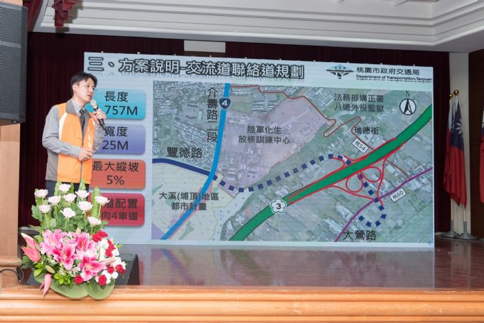 市府已於9月底提送「增設國道3號大鷹豐德交流道可行性研究」予交通部審議,規劃長度1,757公尺、寬度25公尺、最大縱波5%的標準型交流道,預計明(108)年6月通過可行性報告後,由交通部高公局辦理建設、都計變更、環境影響差異分析及用地變更及取得等後續程序;市府也會同時編列相關預算,預計109年開工,並以111年完工通車為目標,希望讓大溪及八德聯外交通更便利。